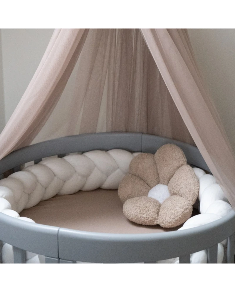 Warkocz został wykonany z wysokiej jakości weluru, co nadaje mu miękkość i delikatność. Ten luksusowy materiał nie tylko dodaje elegancji, ale również stanowi przyjemne dla dotyku wykończenie. Dzięki zastosowaniu weluru warkocz staje się nie tylko funkcjonalnym elementem łóżeczka, ale także estetycznym dodatkiem, który doskonale komponuje się z każdym wystrojem dziecięcego pokoju.