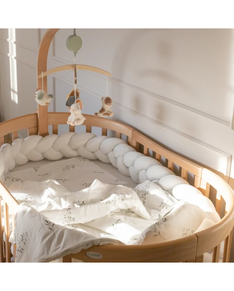 Welurowy warkocz do łóżeczka Waldin to niezwykle elegancki i praktyczny dodatek, który nie tylko pełni funkcję ochrony szczebelek łóżeczka, ale także dodaje mu wyjątkowego uroku. Jego długość wynosząca 210 cm sprawia, że doskonale obejmuje boki łóżeczka, zapewniając kompleksową ochronę przed ewentualnymi uderzeniami czy zahaczeniami.